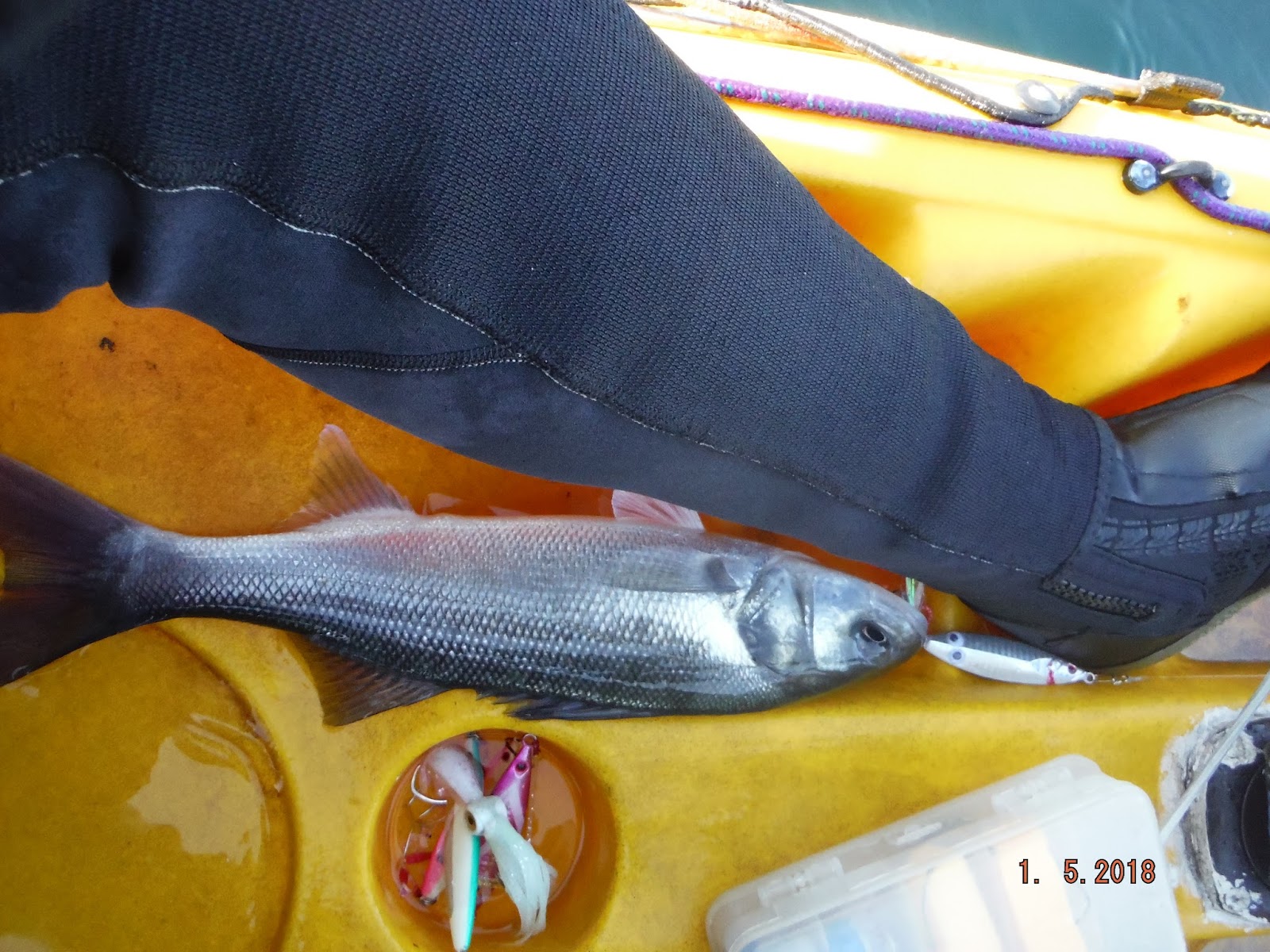 Y aquí bodegón con la captura y el jig de 80 grs que triunfó ... El robalo largo y no muy gordo, sin huevas ...